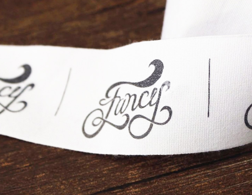 印刷主標簽,是服裝服飾上常用的一種商標,主標是衣服的牌子,由于需要釘在衣服的后領位置,為了避免商標太硬摩擦皮膚,而選用這種比較軟的棉帶,在上面用絲網印刷上主標的LOGO。,錦綸的優點:耐磨性、吸濕性、彈力非常好,小外力下易變形。